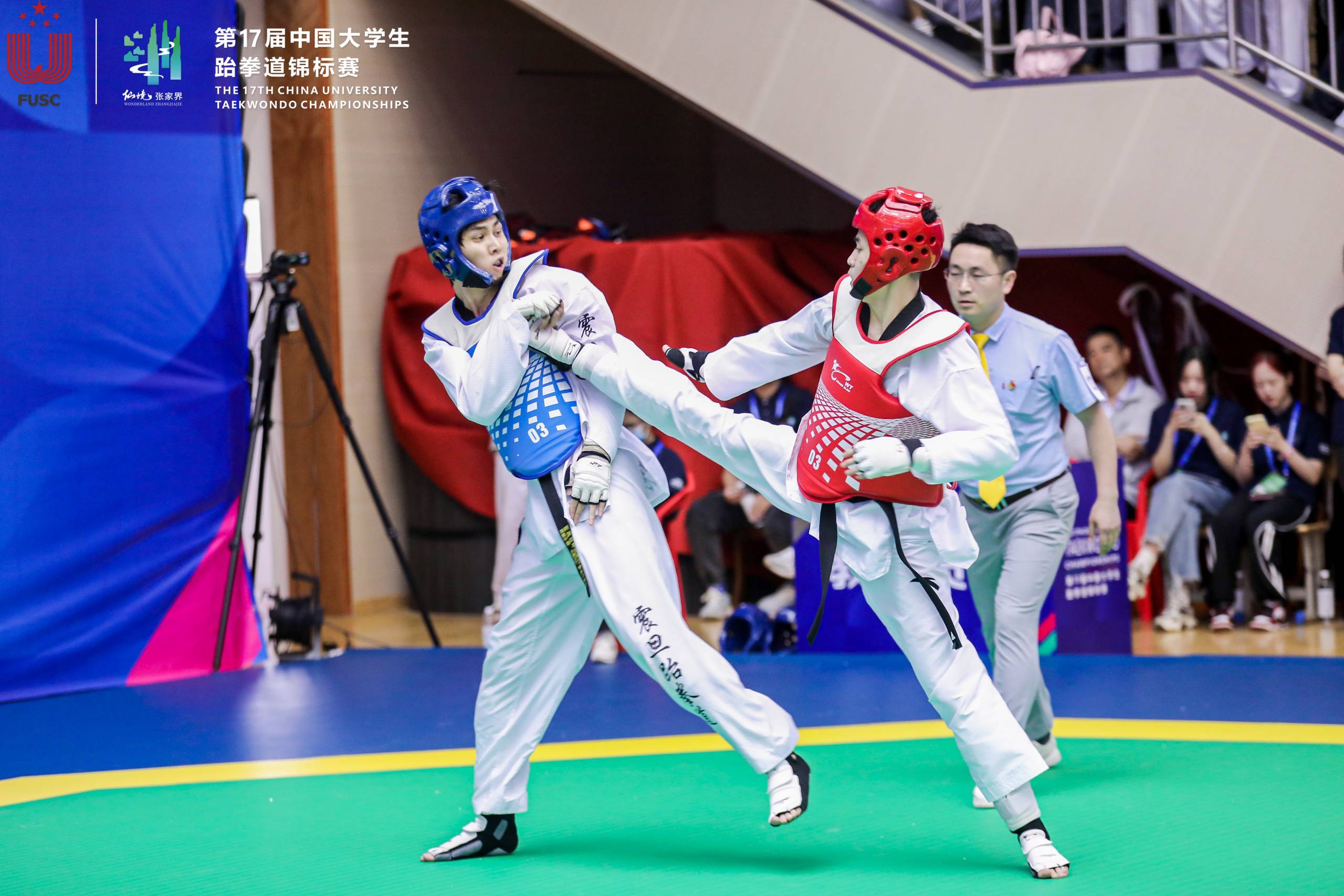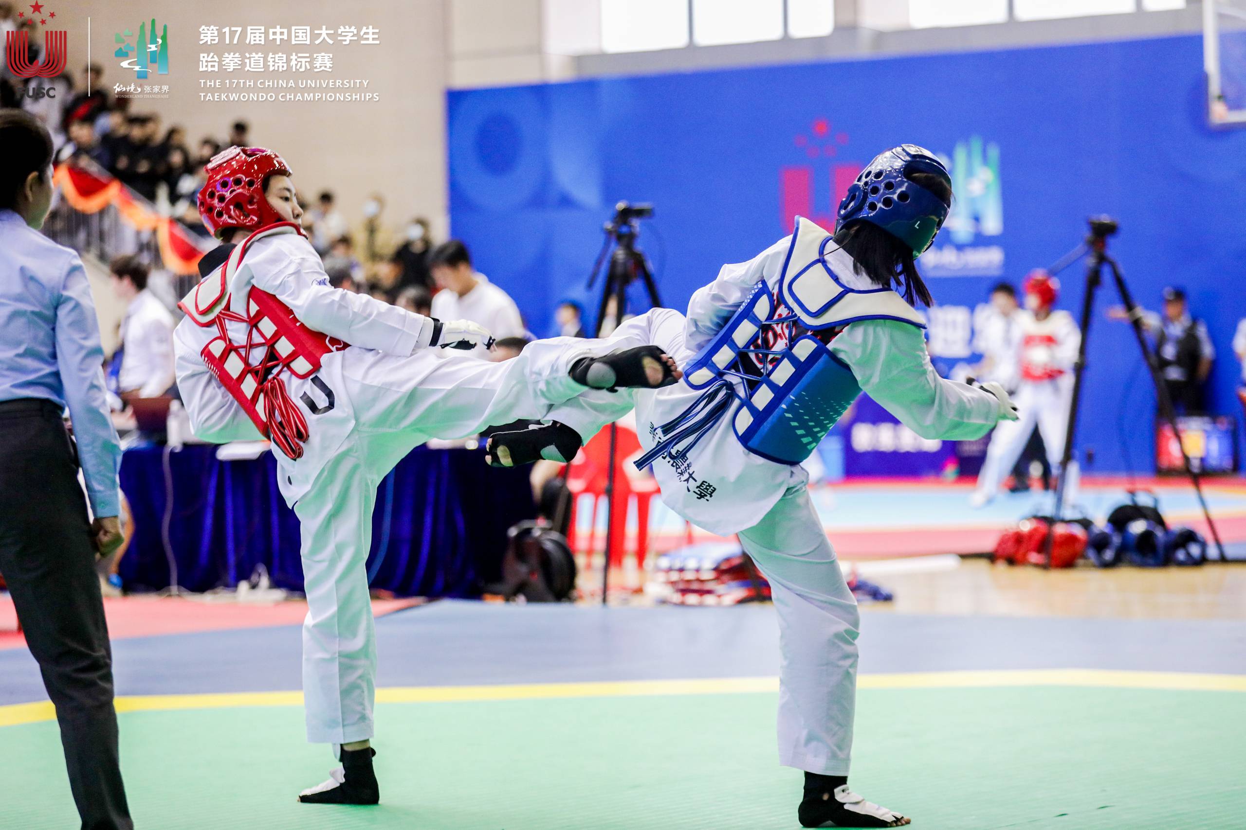 5月29日,第17届中国大学生跆拳道锦标赛在湖南省张家界市第一中学体育馆圆满落幕,本次比赛为期四天,共有来自浙江大学、中山大学、南开大学、中国地质大学等高校的185支队伍,1500余名领队、教练员、运动员。